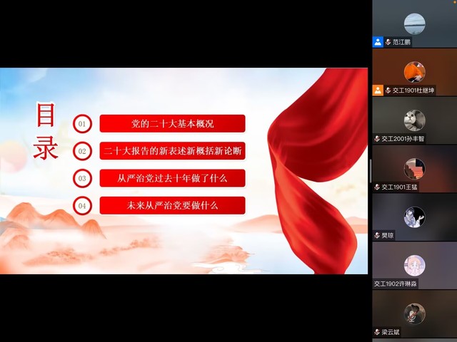 之后进行了关于全面从严管党治党理论知识学习,回顾了从严治党过去十年做了什么,未来如何继续落实全面从严治党。