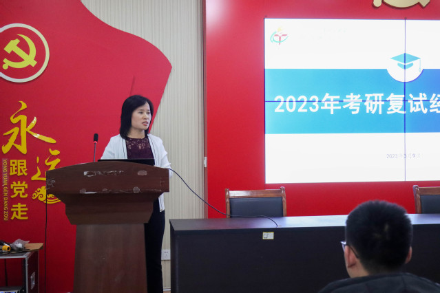 李瑞先指出研究生复试全面考察员工专业基础理论、专业综合能力、实践与创新能力、人际沟通与团结协作等方面的综合素质,她从考研复试的流程、复试的内容、复试注意事项等方面进行了详细讲解并提出具体建议,她鼓励同学们要做好充足的准备,保持自信沉稳的心态,从容冷静应考,并预祝所有同学如愿以偿,一战成硕。