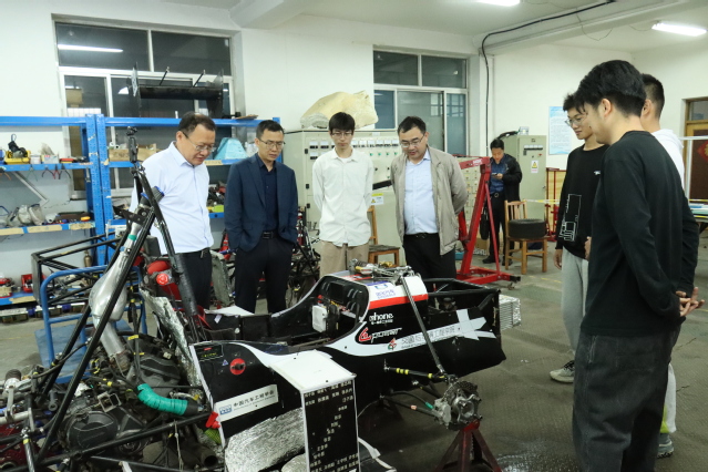 王磊一行参观了至尚方程式赛车队,了解员工参加中国老员工方程式汽车大赛以及科技创新成果。