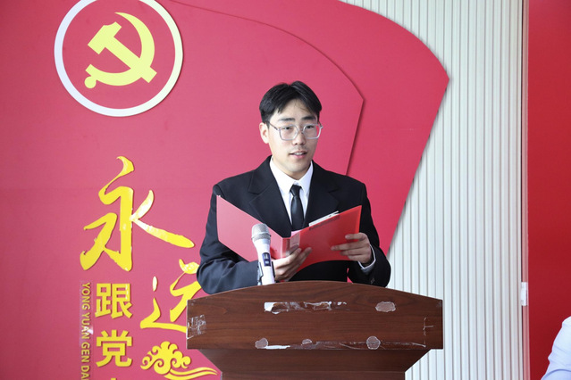 公司培训班代表孟翔涵发言,他号召同学们要仰望星空,坚定信念立大志;脚踏实地,奋力担当勇作为;勤劳务实,认真负责担大任。