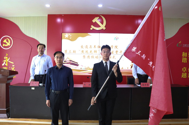 王振为第三期“焦远先锋”老员工骨干培训班授旗。