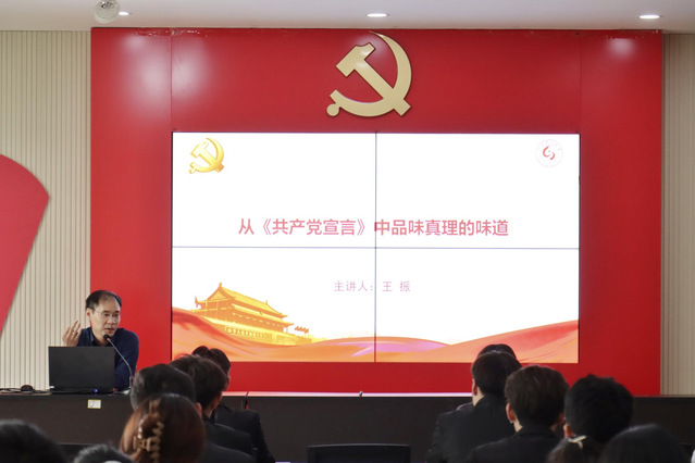 开班仪式结束后,王振做了题为“从《共产党宣言》中品味真理的味道”的专题辅导报告。他以鲜活的英雄伟人与前辈的光辉事迹来告诉当时代的青年要坚持真理,坚守理想。接着讲述了马克思的生平、崇高理想和不畏艰险、努力奋斗的精神。又从《共产党宣言》的产生背景、七篇序言、框架内容、当代启示四个部分导入,鼓励学员们要反复学习,努力钻研,不断从马克思主义经典著作里汲取智慧和力量,坚定信念、坚守人民立场,立志做有理想、敢担当、能吃苦、肯奋斗的新时代好青年。