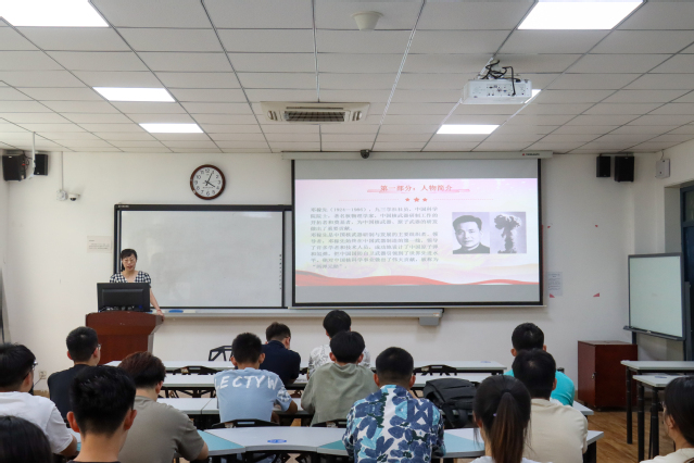 谭迪讲授了题为“‘两弹元勋’邓稼先:愿以身许国”的专题党课,她围绕人物简介、生平事迹、邓稼先的优秀精神品质等方面展开讲解。她讲到,邓稼先的优秀精神品质包含胸怀祖国、服务人民的爱国精神;勇攀高峰、敢为人先的创新精神;追求真理、严谨治学的求实精神;淡泊名利、潜心研究的奉献精神。邓稼先以对祖国和人民的深沉情怀和忠诚担当,诠释着爱国科学家与祖国同呼吸、共命运的崇高境界。她结合个人奋斗经历,从学业发展、科研工作、老员工活等方面对在座同学们给予指导,鼓励大家积极学习邓稼先的优秀精神品质,培养敢为人先的创新精神和严谨治学的求实精神。