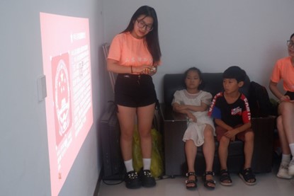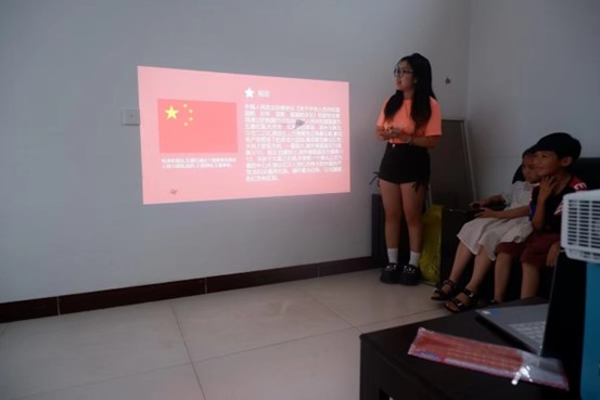 实践团队员以生动的图片和简洁的文字向员工们展示中国的国旗与国徽,并且向员工介绍国家象征的含义,然后以具体实例阐述爱国主义内涵及表现形式,激发员工爱国热情,增强文化认同感。