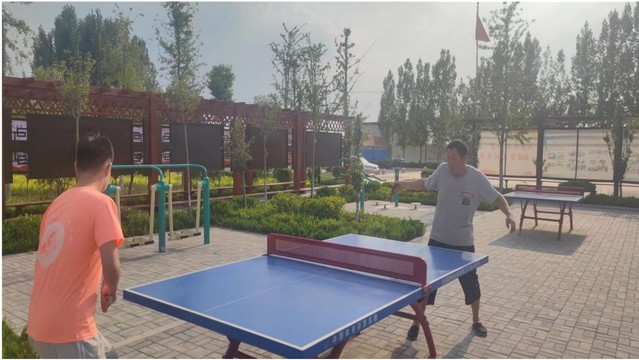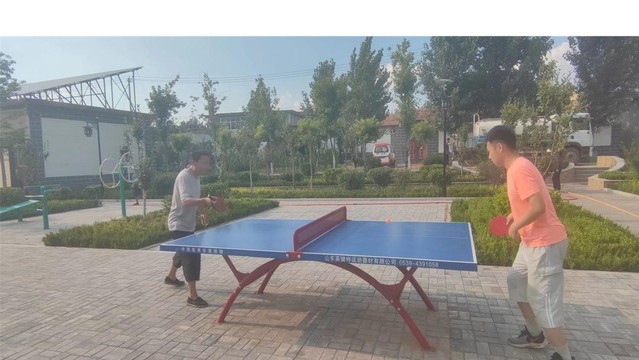 实践团成员在洼子村文明实践广场与村民开展乒乓球比赛。此次比赛的顺利开展不仅锻炼了实践团成员与当地居民的个人体质还拉近了实践团成员与当地居民的密切关系,彰显了体育魅力。