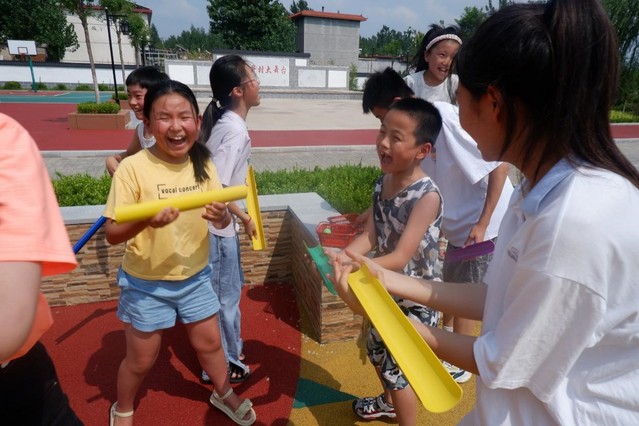 比赛过程中,实践团成员与洼子村的同学们经多次尝试,熟练掌握活动技巧,组内成员积极交流沟通、团结合作,游戏氛围热烈。实践团成员们积极引导同学们遇到困难及时更换策略,共同努力,体现出团队默契和同学们坚持不懈的精神。