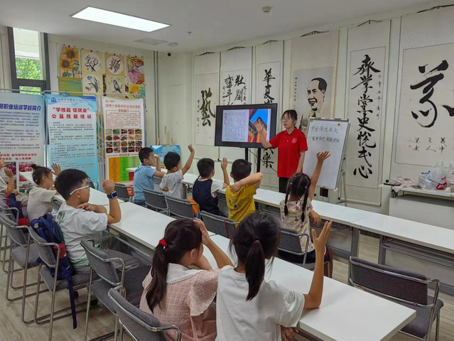 7月10日,“循梦而行”暑期社会实践团在齐悦国际社区开展“齐小团暑期托管课堂”——中国传统礼仪教学。本次教学活动由实践团队员冯梦姝,张飞燕共同教授,参与成员共20人。