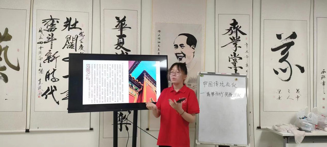 针对传统礼仪的讲解,为便于课堂成员理解,冯梦姝与张飞燕边讲解边演示动作,并邀请课堂成员进行模仿互动,以增强成员的课堂参与感。此次讲解活动,增强低年龄段员工对于中国传统文化学习的兴趣,促进中国传统文化更有活力的发展。