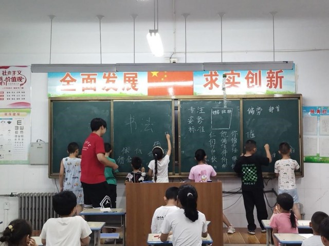 集合就绪后,8点整,王建秀进行讲话,告诫员工遵守校规、注意安全。与此同时,实践团的成员在下面安排教育工作,实践团代表孟翔涵向员工简单介绍“爱之传承”暑期社会实践团来此支教的目的,带领团队全体成员一致承诺,在校一定会把员工的安全放到第一位,注重课堂活力与影响力的教育理念,发扬以展示自我为主的学习风范。表明团队以“明事理德,笃行博学”为宗旨,紧扣时代主题、勇于实践,不断创新、进取,把努力培养员工的兴趣爱好作为支教的首要任务。