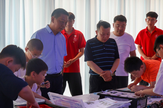 随后,校领导带领县教体局领导参观了科技馆,科技馆致力于通过有趣的小实验来培养员工们对于科学的兴趣与探索热情。卜召刚表示,科技是第一生产力,培养员工们对于科学的兴趣至关重要。