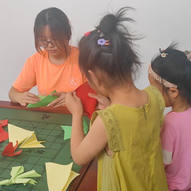折纸课堂,愿梦飞翔。折纸作为一门古老的艺术通过长时间不断的演变和发展,现代折纸对于儿童、青年人可以说是一种既富挑战性又能启发思维的身心活动。折纸的艺术具有审美价值,蕴含着数学运算和空间几何的原理。实践团成员开展的趣味折纸特色课堂活动让小朋友们在寓教于乐的氛围中,增进对传统手工艺文化的了解,充分感受到中华传统文化的艺术魅力,增强其文化自信。