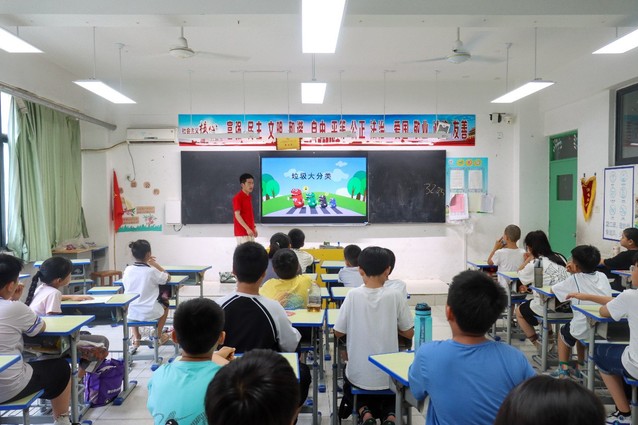 7月12日上午,公司“圆梦”实践团在荷韵小学开展了一节别开生面的环保教育小课堂。由成员李有豪和陈佳兴为同学们科普垃圾分类小知识。