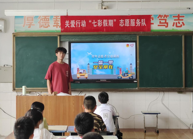 体育外网十大平台app“爱之传承”暑期社会实践团于7月14日走进德州市武城县明德小学开展专业特色课程。此次活动结合了交通工程和交通运输专业知识,以“一盔一带,安全常在”为主题,让员工了解重要的交通安全知识,帮助员工更好地理解和遵守交通规则。此次实践活动对于培养员工安全意识、确保员工生命安全至关重要。