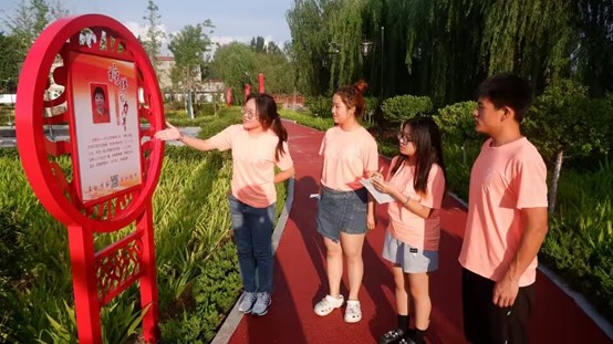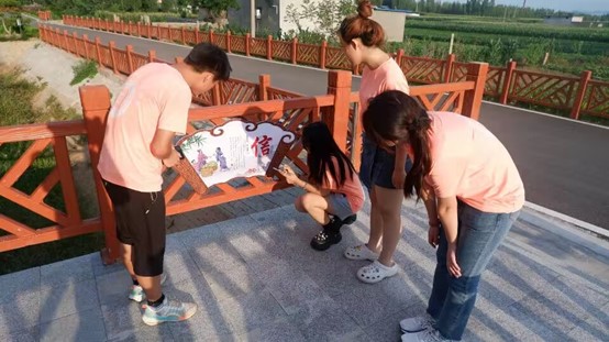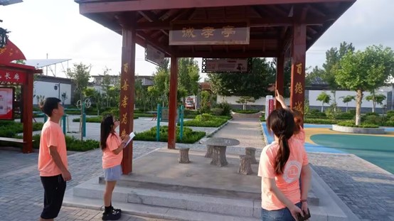 实践团成员来到诚孝文化主题广场后,先对“诚信文化一条街”进行参观,诚信文化一条街随处可见诚信宣传板,每块宣传板上都有诚信小故事,诚信的基因一直根植于洼子村村民的血脉之中,其化作丰厚的文化底蕴、丰富着村子内涵,熔铸成洼子村的温暖底色。