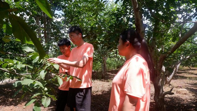实践团成员走进果园,专门对果树进行考察,实践团成员不仅学习如何辨认不同种类的果树,还了解到果树的日常养护以及病虫害的防治方法。通过这些实际操作和学习,实践团成员逐步理解果树的栽培技术,进一步加深对果树的认识。