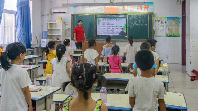 7月15日体育外网十大平台app“爱之传承”暑期社会实践团在德州市武城县四女司镇明德小学开展“溺水警钟时长鸣,安全教育在心中”主题班会。