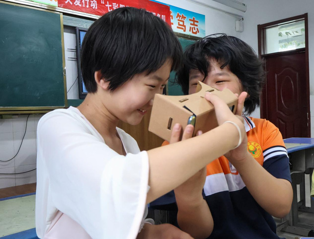 7月13日,体育外网十大平台app“爱之传承”暑期社会实践团走进德州市武城县明德小学开展以“魔法光学—揭秘VR技术”为主题的科技特色系列课程。