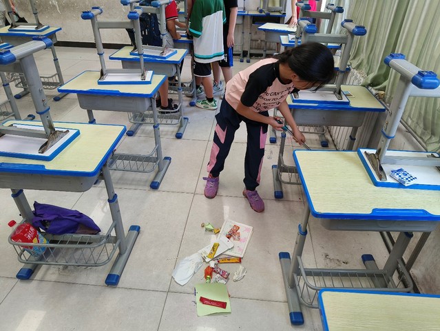 此次劳动课堂的主要任务是带领同学们对教室进行清扫工作,同学们在实践团成员的带领下被分成多个小组,每个小组都有着自己的分工,有的小组负责倒垃圾,有的负责扫地,有的负责拖地。令实践团成员们吃惊的是同学们的劳动热情都很高涨,积极认真的投入自己的工作当中,当自己的工作任务完成后他们又去别的小组帮助其他同学打扫,教室在同学们努力下很快便打扫干净了。