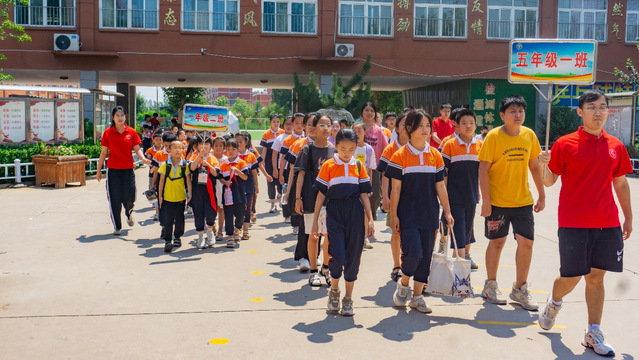 在实践团成员护送下,各个班级举牌带队有序离开校园。每个班级分为三路纵队,分别通往机动车区、非机动车区和步行区。实践团成员对等待员工放学中的家长进行随机采访,员工家长对实践团成员表示感激,家长表示,由于道路少,路面窄,接员工放学会发生严重拥堵事件,产生安全事故、浪费时间、破坏心情、耽误工作等负面影响,实行分区组织规划设计有效改善放学时段交通拥挤问题。此项分区组织规划设计得到各位家长一致好评。