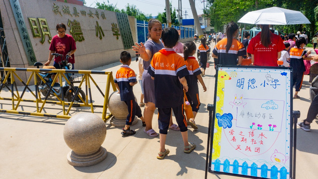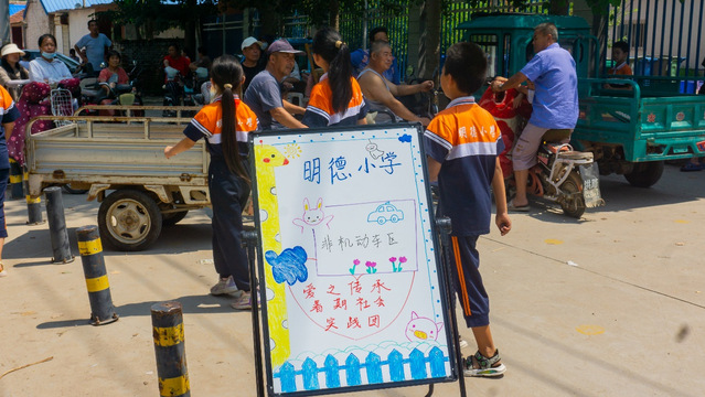 为了确保高能见度和使指示牌更容易被注意到,这些分区指示牌被放置在校园门前道路的适当位置上。家长们可以按照指示牌上的分区信息,在相应的位置等待孩子放学。考虑到阳光照射的问题,实践团成员还合理地选择了紧邻大树的位置。这样,等待员工放学的家长们可以在树荫下乘凉消暑,为他们提供了一个舒适的等候环境