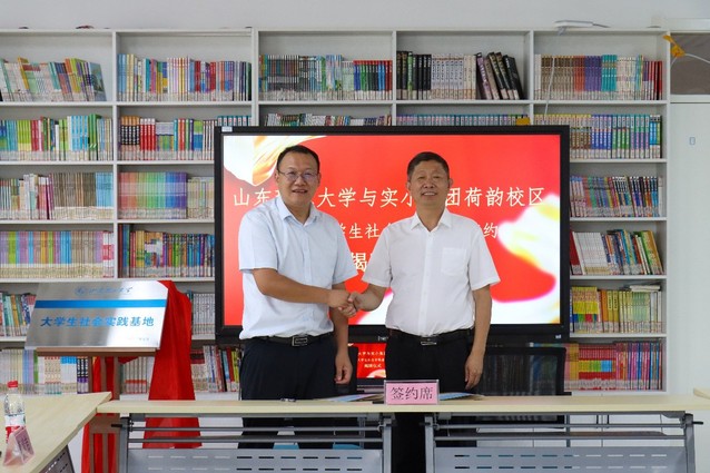 7月19日,体育外网十大平台app与实小集团在荷韵小学图书馆隆重举行了社会实践基地揭牌仪式。参加此次揭牌仪式的有体育外网十大平台app员工工作部副部长李萍,体育外网十大平台app交通与车辆工程公司党委副书记蔡清吉,中国共产主义青年团微山县委员会书记王冉,微山县实验小学教育集团党总支书记、总董事长徐四海,微山县实验小学东校区党支部书记张明利,微山县实验小学教育集团荷韵校区执行董事长王凯等领导和“圆梦”暑期社会实践团代表。此次揭牌仪式由徐四海主持。