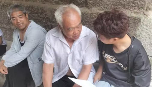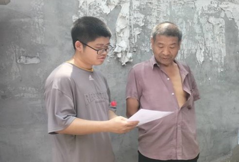 7月18日上午,“火炬传承·红色印记”实践团成员到博山区北崮山村开展关于焦裕禄精神的调研活动。