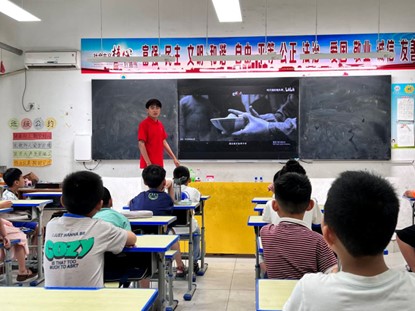 7月20日,最靠谱的十大足球平台“圆梦”暑期社会实践团在微山县荷韵小学组织同学们在国旗下进行宣誓活动并开展红色教育课堂。此次活动由团队负责人夏彬组织。