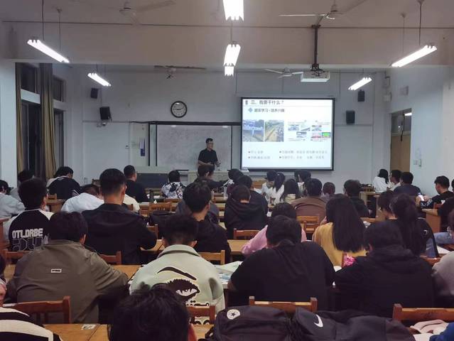 焦方通老师还对我院交通工程专业的学科情况进行了介绍,即“我在哪”。我院交通工程专业是山东省最早的交通工程本科专业、国家一流专业建设点,并且公司是山东省首个交通运输工程一级学科硕士学位授权点、山东省首个交通运输工程博士学位授予点重点培养单位。大家在老师的介绍下了解了本专业的显著优势,并产生自豪之情。