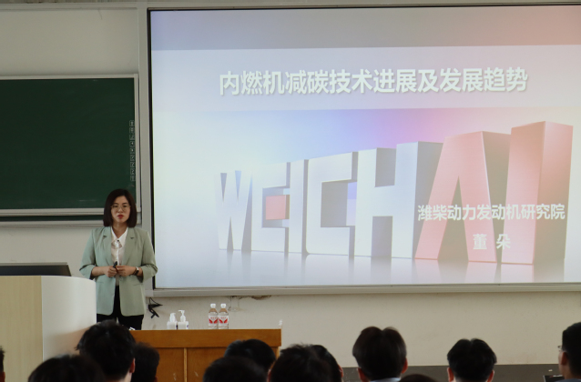 郑斌向同学们介绍了潍柴的基本情况,他讲到,公司长期以来与潍柴集团就有着良好的合作基础,并与潍柴集团合作共建了智能汽车现代产业公司,进一步加深了校企合作。他希望同学们把握机会,积极报名“潍柴精英班”的选拔。