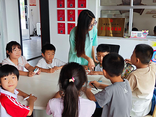 图为实践团成员指导孩子绘画图片