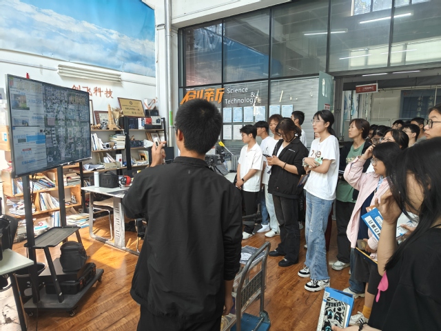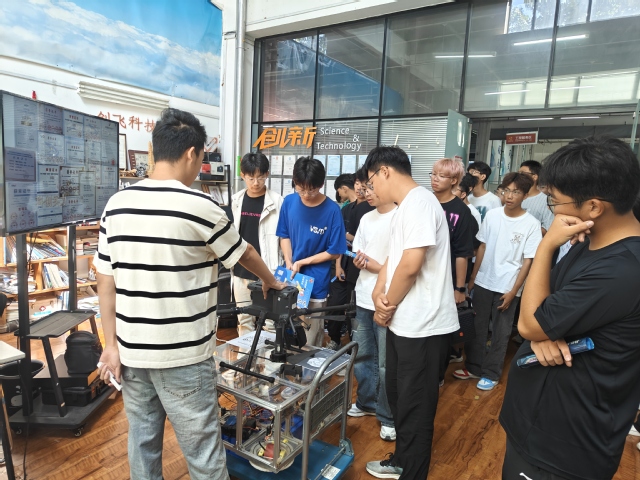 本次参观讲解团队由隋德鑫、盛利源、杨博超、张皓琪和顾明航等社团成员组成。新生们紧跟讲解员的步伐,认真聆听创飞科技社团的发展历程、孵化成果以及未来规划。作为公司创新创业教育的重要载体,创飞科技社团为同学们提供了实践锻炼、项目孵化、技术支持等全方位的服务。