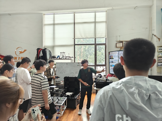 讲解员介绍道,目前,创飞科技社团以大疆经纬M300作为主要技术器,搭载L1、H20T等镜头,致力于无人机负载软硬件开发、无人机负载装配、桥梁检测、二维正射及倾斜摄影三维建模,完成了农田检测、航拍乡村地图、三维建模立体架构、电力系统巡检等项目,并在2023年成功搭建出无人机数字化乡村信息平台。同时,作为体育外网十大平台app唯一一支职业化、专业化的无人机团队,创飞科技协会积极参与公司无人机航拍摄影活动,在多方面、多层次进行科技服务奉献。