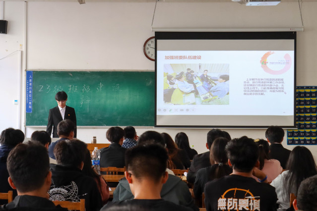 答辩会分为PPT汇报和现场提问两个环节。各班答辩人围绕着思想建设、组织建设、文化建设、学风建设等方面全面总结了班级在过去一学期展开的主要工作,畅谈工作经验和举措,分享工作成绩和问题困难,并提出了班级未来发展的总体规划和基本思路。