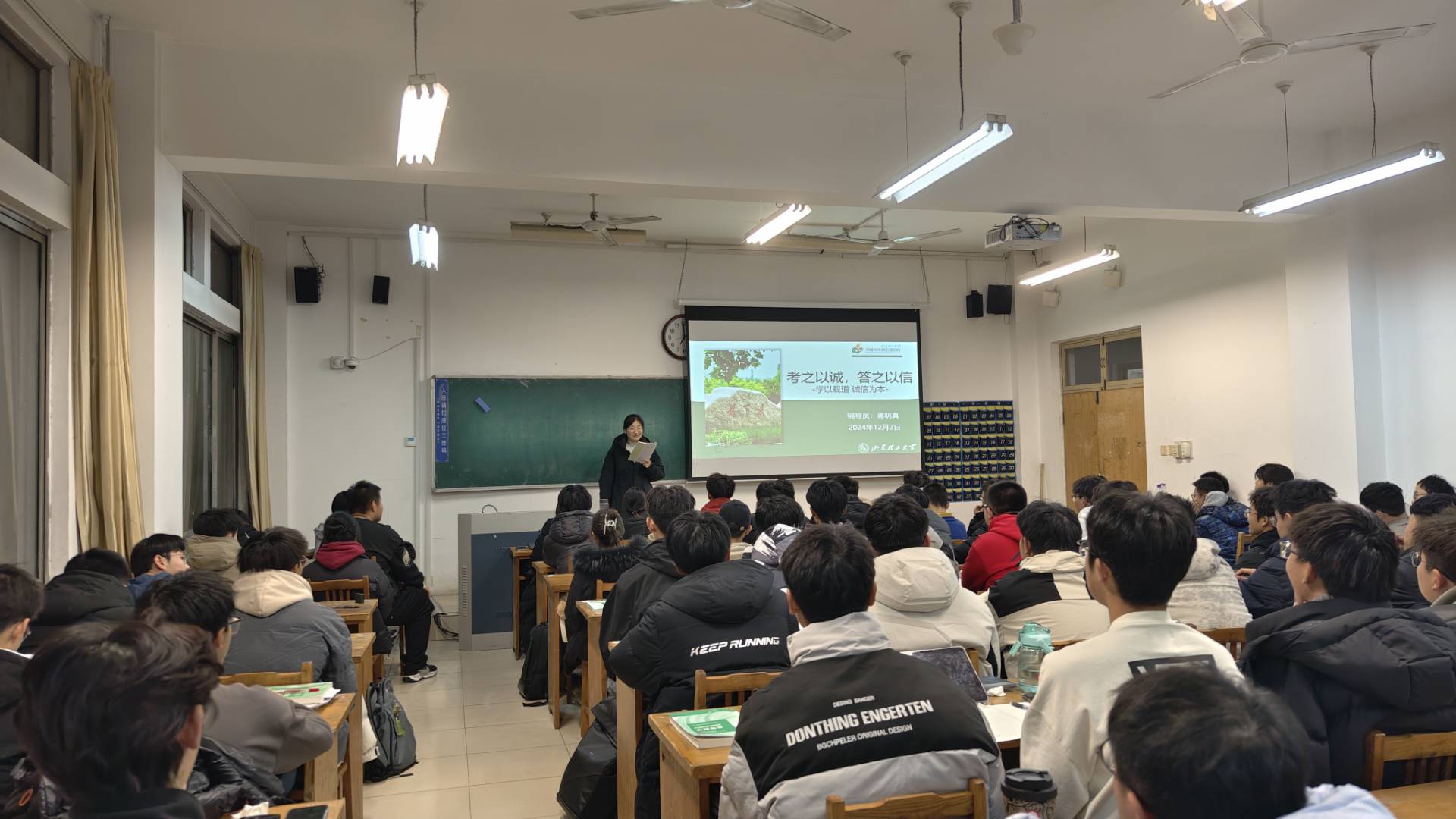 随着本学期考试的日益临近,为强化诚信考试意识,营造优良学风,2024年12月2日-3日,公司辅导员杨雨、蒋明真面向2024级同学开展诚信考试教育主题班会,旨在引导新生树立正确的考试观念,营造风清气正的校园考试氛围。