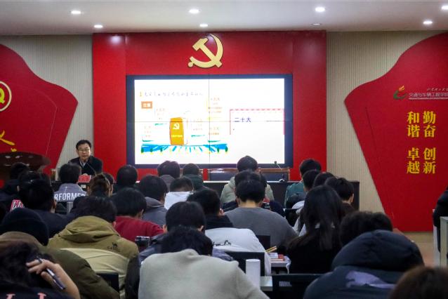12月10日,公司党委书记褚兆勇以“高举中国特色社会主义伟大旗帜”为题在12教217室为公司100余名入党积极分子讲授专题思政课。