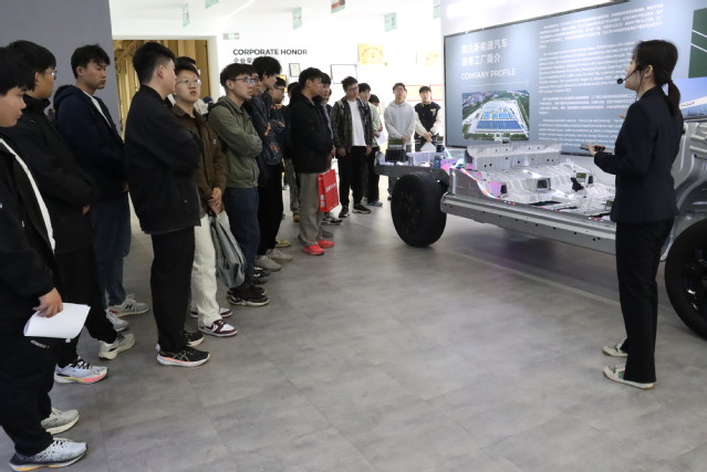 企业负责人带领师生参观了企业展厅、实验室与生产线,近距离观看了零部件生产和检测过程,深入了解了企业的发展历程、核心技术、前沿产品及用人需求等情况。