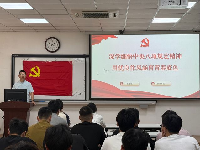教工第二党支部书记吕金升讲授了题为“深入贯彻中央八项规定精神,筑牢作风建设根基”的专题党课。