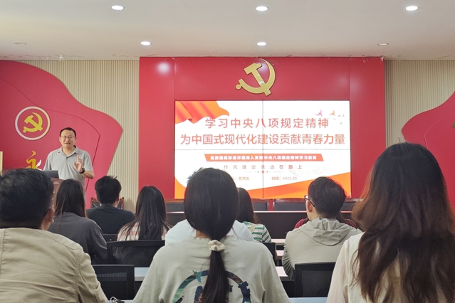 员工第五党支部书记张仕杰讲授了题为“加强党的作风建设:落实中央八项规定精神”的专题党课。