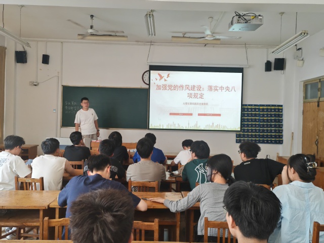 研究生第一党支部书记杨雨讲授了题为“深入学习贯彻中央八项规定精神,勇扛新时代研究生党员使命担当”的专题党课。
