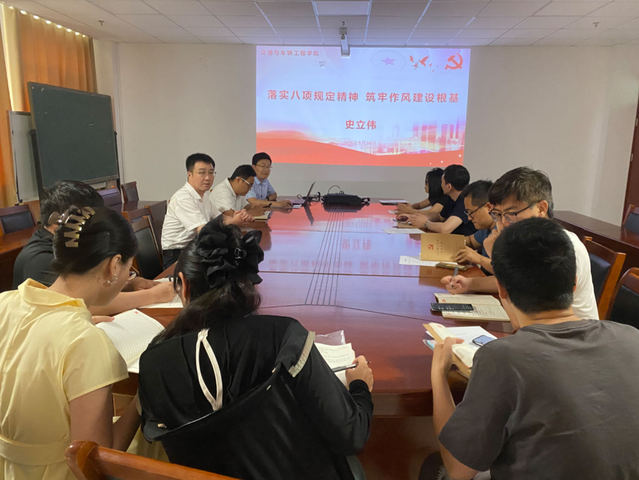 公司副经理史立伟讲授了题为“落实八项规定精神,筑牢作风建设根基”的专题党课。