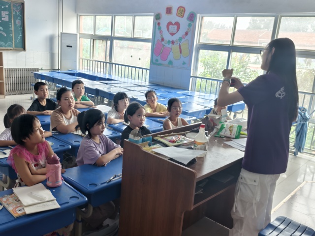 当实践团成员梁洪年带着白醋、小苏打、维生素C、碘伏、蜡烛等实验用品走进教室,小朋友们期待的目光立刻被她吸引。首先,实践团成员梁洪年首先用通俗的语言给大家讲述了即将进行的两个实验的实验原理,小朋友们带着对新知识的渴望,认真地学习老师讲解的内容,科学的种子在他们的心里悄然埋下。