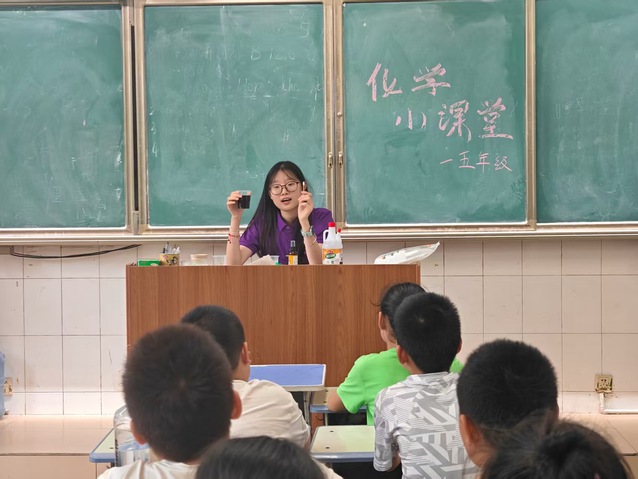 为了提升小朋友们的科学素养,培养他们的科学兴趣,发展实践动手能力,7月21日,体育外网十大平台app爱之传承暑期社会实践团应用化学专业的梁洪年同学在明德小学开展了化学实验趣味课程,让小朋友们在体验中培养兴趣,在探索中提出疑问,在思考中启迪智慧,在精彩纷呈的化学实验中初窥世界的奥妙。