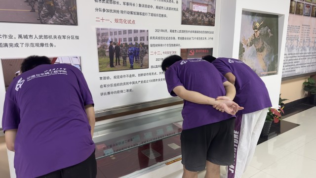 在纪念馆内,气氛瞬间变得安静又肃穆。实践团成员一字一句地阅读着墙上的英雄事迹,感受每一行文字背后滚烫的信仰。进入红色展馆内,一件件红色展物如同会说话的“时间碎片”,把队员们瞬间拉回硝烟四起的年代。每一件遗物都是一枚火种,让“信仰”二字从抽象变得滚烫,烧红了青年们的内心,也点燃了他们心底为未来拼搏的誓言。