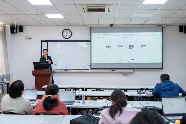 为深入贯彻高等教育数字化战略部署,推动人工智能与公司产品深度融合,探索新型教学模式与未来学习方式,11月11日下午,公司在12号教学楼211教室举办“青椒致远坊”——课程知识图谱AI构建工作坊培训会。会议由副经理郑斌主持,各系室主任、教学副主任、教学秘书及骨干教师参加。会议特邀智慧树平台专家团队成员李朵、王磊担任主讲。