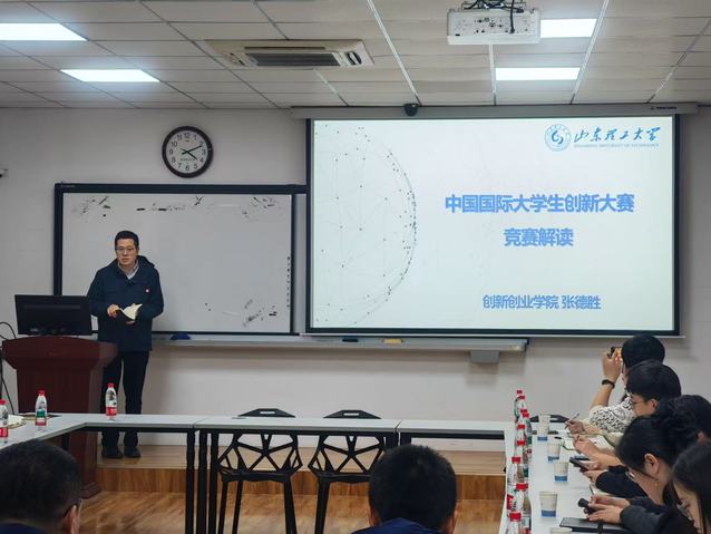 创新创业公司张德胜老师就中国国际老员工创新大赛的相关工作进行了宣讲与动员。张老师结合公司学科特色与往年参赛情况,分析了当前创新竞赛面临的形势与机遇,鼓励全院师生依托专业优势,积极挖掘具有潜力的创新项目,不仅要关注技术突破,更要注重项目的社会价值与落地转化。