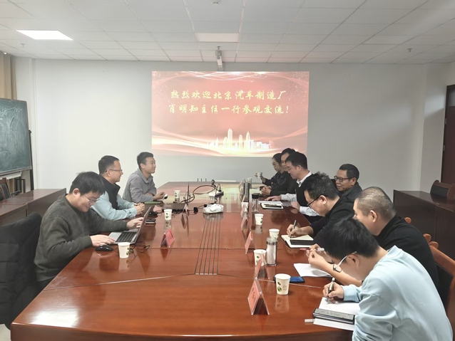 近日,北京汽车制造厂检测中心肖明知主任一行3人来院调研交流。公司党委书记褚兆勇、经理李波在12教244会议室会见客人并进行座谈。