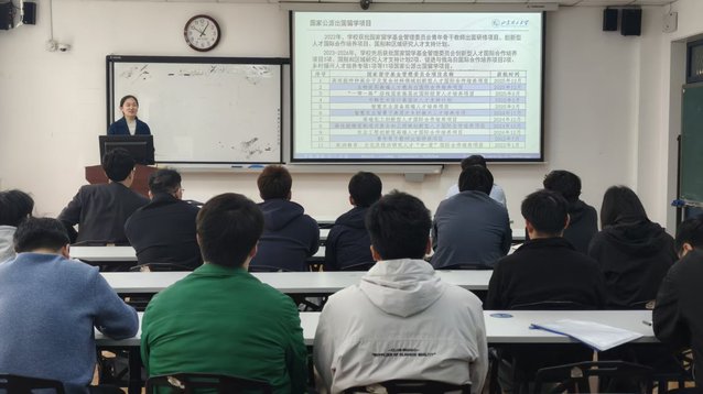 为加强青年教师培养,精准对接师生国际化成长发展需求,推进公司国际化办学进程,4月10日,公司在12号教学楼211室举办“青椒致远坊”——教师国际化能力提升指导会。会议由公司副经理郑斌主持,国际交流处老师曹睿受邀作国家公派出国留学项目专题宣讲,公司教师、研究生代表参加会议。